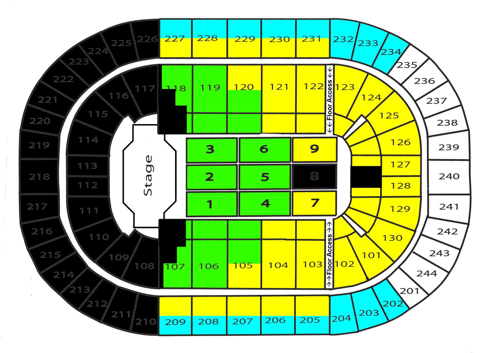 | $102.00 | Floor 7 & 9, Rows K-S in Sections 105 & 120, all of 101-104 & 121-130; Rows A-J in 205-209 & 227-231 |